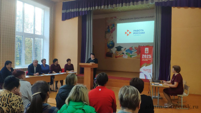Начальник отдела СОГКУ «Центр занятости населения Рославльского района» в Ершичском районе Яшкевич Ирина Борисовна познакомила родителей с возможностями Единой цифровой платформы Работа России, которая предоставляет доступ к актуальной информации о вакансиях, рынке труда, профориентационных мероприятиях, целевом обучении.
