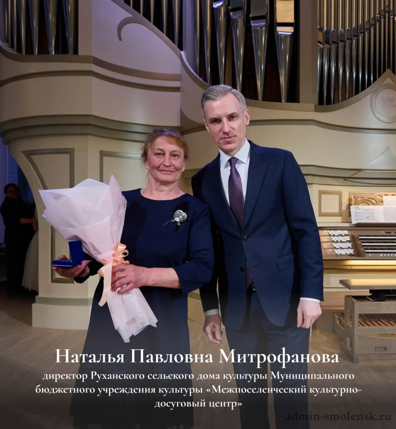 Губернатор Василий Анохин вручил знаки «Почётный работник культуры Смоленской области» заслуженным работникам сферы. Среди них — Наталья Митрофанова, директор Руханского СДК. Гордимся нашими талантливыми земляками!
