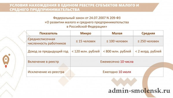 • УСЛОВИЯ НАХОЖДЕНИЯ В ЕДИНОМ РЕЕСТРЕ СУБЪЕКТОВ МАЛОГО И СРЕДНЕГО ПРЕДПРИНИМАТЕЛЬСТВА